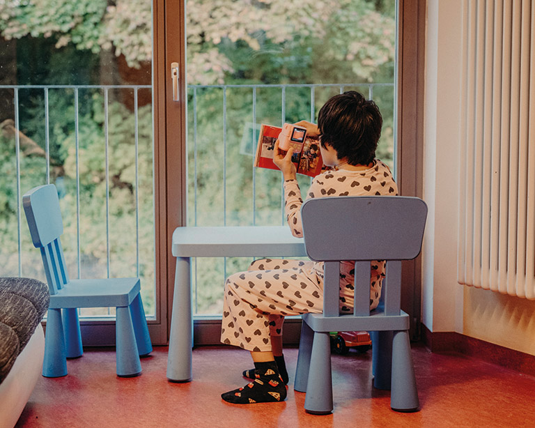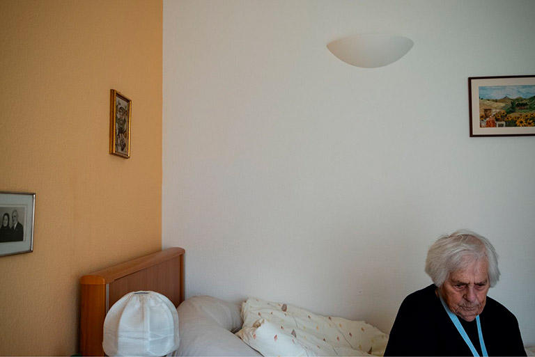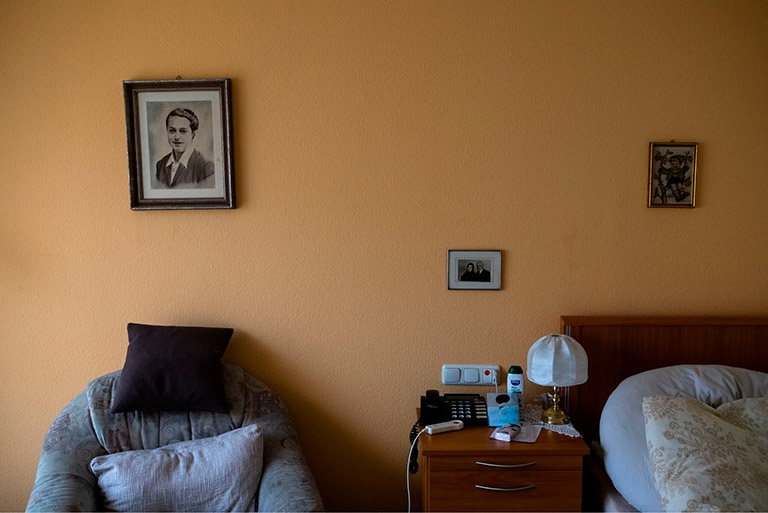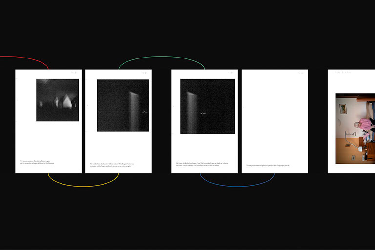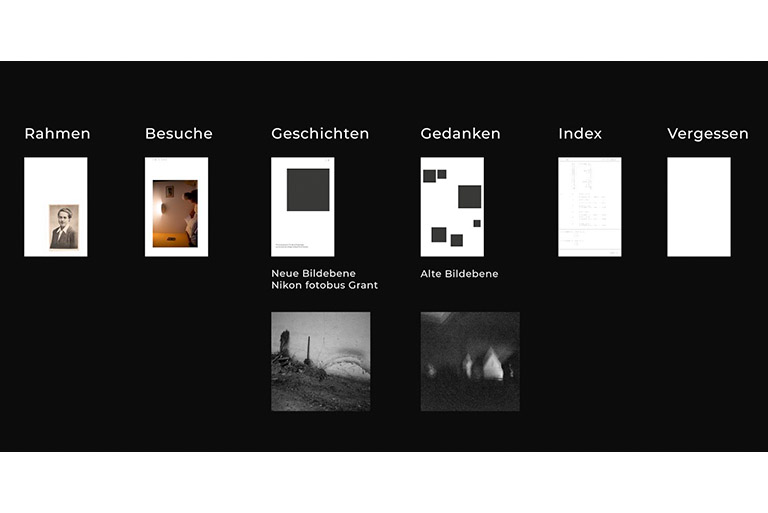 World War II forced my grandmother to leave home. Decades later, she had to go into the unknown again: She went blind and had to live in a care home. Whenever I visited her, she would tell me stories from her childhood. In her room, invisible to her, she told me about places that no longer exist – the village on the Danube where she grew up, the camps on her escape route, the new house where she found a home. Together we went on journeys into her memories and my imagination. My work „wie Gespenster“ shows images that were created during my visits, shares transcripts of my grandmother’s stories, and attempts to construct the invisible places she was telling me about. The aim is to record our memory talk and thus share the increasingly rare reports about the consequences of the Second World War. Presented as an experimental loose-leaf collection, the characteristics of memory are translated into the book space, enabling slight shifts, forgetting, or complete rearranging. Based on an intimate personal story, the work offers timeless insights into the effects of nationalism, displacement, and optimism.