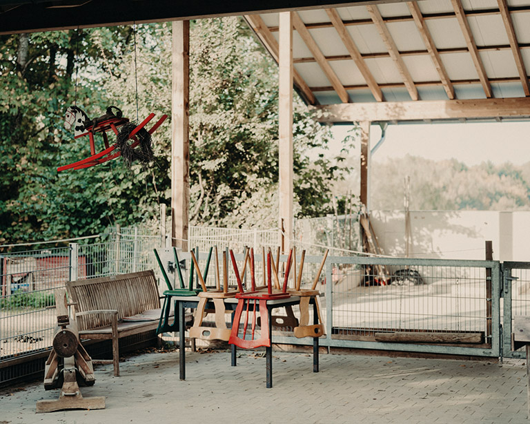 Circa 330 v. Chr. schrieb Aristoteles: «Zur Aussetzung oder dem Aufziehen der Neugeborenen soll ein Gesetz vorschreiben, dass man kein behindertes Kind aufziehen darf». 2251 Jahre später entstand die Schrift: Die Freigabe der Vernichtung lebensunwerten Lebens von Karl Binding und Alfred Hoche, in welcher es heißt: «Daß es lebende Menschen gibt, deren Tod für sie eine Erlösung und zugleich für die Gesellschaft und den Staat insbesondere eine Befreiung von einer Last ist, deren Tragung außer dem einen, ein Vorbild größter Selbstlosigkeit zu sein, nicht den kleinsten Nutzen stiftet, läßt sich in keiner Weise bezweifeln.» Unter dem Namen Euthanasie haben die Nazionalsozialisten auf Grundlage dieser Schrift die Aktion T4, einen Massenmord an geistig-, körperlich- und psychisch erkrankten Menschen, begangen. Unter dem 8. Punkt Schule, Hochschule und Forschung steht heute in der Präambel der AFD: «Wir wollen, dass an unseren Schulen wieder Leistung und Disziplin einziehen.» Mit dieser Forderung werden jegliche Anstrengungen für eine inklusive Gesellschaft in Grund und Boden gestampft. Das Deutsche Bildungs- und Arbeitssystem ist auf Leistung ausgelegt und der Weg, eine Leistungsgesellschaft inklusiver zu gestalten, ist steinig. Ich werde mit meinem Projekt die Möglichkeiten erforschen, die behinderte Menschen in Deutschland zum arbeiten, lernen und leben haben und auch wer ihnen Alternativen und Unterstützung schafft. Ich möchte die Geschichten von den Menschen erzählen, mit denen so oft nicht gesprochen wird. Ich selbst habe eine behinderte Schwester und bin mit der Normalität der Inklusion aufgewachsen. Neue oder unbekannte Dinge werden selten einfach so hingenommen und bei Inklusion geht es auch darum zu lernen, mit neuen Situationen umzugehen. Ich möchte mit meiner Arbeit meinen Teil beitragen und Menschen mit Behinderung ein Sprachrohr geben, das ihnen ermöglicht, diese Unsichtbarkeit abzulegen, die ihnen seit Jahrtausenden zugeordnet wird. Begonnen habe ich das Projekt im Bereich der Bildung in der Schule meiner Schwester: Der Verein Camphill Schulgemeinschaften e. V. ist Träger des Privaten Sonderpädagogischen Bildungs- und Beratungszentrums mit Internat mit zwei unterschiedlichen Förderschwerpunkten. Zum einen auf die geistig, körperliche und motorische Entwicklung, sowie zum anderen die Gründung und Entwicklung von Initiativen und Angeboten für Menschen mit und ohne Behinderung. 200 Schüler*innen leben und lernen an den drei Standorten Brachenreuthe, Bruckfelden und Föhrenbühl, oder besuchen sie als Tagesschülerinnen und Tagesschüler. In Föhrenbühl entstehen gerade die ersten Bilder, Gespräche und Freundschaften meines Projektes. Die Schule liegt unterhalb des Heiligenberger Schlosses mit einem weiten Blick in das Salemer Tal. Es ist der größte Standort der Camphill Schulgemeinschaften am Bodensee. Idyllisch am Berghang gelegen, bilden zehn Wohnhäuser des Internats, Schulgebäude, Kindergarten und Gärtnerei ein ganzes Dorf.