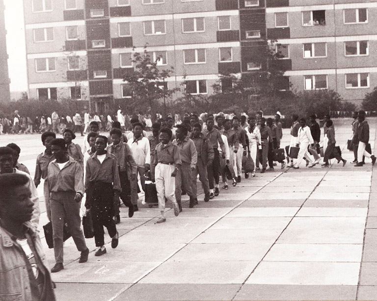 A country that no longer exists, long before my time. Today, some speak of the „new federal states“—places my Black mother refuses to go to, places I haven’t invited family members to exhibitions. My own personal myth: East Germany. Growing up in West Germany, I hardly remember hearing about the perspectives of those who came as guests before 1989 and were treated as strangers after the Wall came down. I’m referring to political refugees, contract workers, students from the socialist „brother lands“ of the GDR. This GDR offers a visual insight into the lived realities of Black East Germans. Despite decades of research on racism in the GDR, the stories of these individuals remain largely unheard. In the late 1960s, there were agreements between the GDR and the socialist brother countries: Angola, Cameroon, Mozambique, to name just a few. Unlike in the FRG, these weren’t just “guest workers,” but “Werkstätige”—meaning not just laborers but also students and pupils. The people who arrived began new lives in the GDR. Families were formed and torn apart again—at the latest when contracts expired or the Wall fell. A few managed to return, some were allowed to stay, others never saw their children again. Depending on location—whether urban or rural—their experiences with education, work, and opportunities differ significantly. But where are they today? I am a white-passing, Afro-German from a different generation. Hence my work serves as a way for me to address gaps in my own historical knowledge through the medium of photography. In a participatory process, I aim to learn with and from the participants–This GDR is not my story. Starting from photo albums, diaries, and interviews,we develop a mosaic of Black GDR life. The combination of color film portraits and b&w materials create a space that blends memories with contemporary relevance. For full-body portraits, I am using an analogue large-format camera, which fosters a slower and deeper exchange between the participants and me. This technique follows a photographic tradition used since the 19th century by both colonial photographers and often-overlooked African artists. Since working on this project for the last 1,5 years, I now am at a point of reflecting the so far twelve individual biographies of participants and my own learning process – how can i furthermore fill historical gaps as well as accepting fragmentariness? I’ll probably never fully understand life in the GDR. Maybe it’s just an attempt—not to understand them, but to show them—and to briefly immerse myself in their past. Instead of forgetting them, I seek out old and new images and weave them into my own world—with no claim to completeness.
